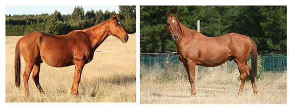 Pictured here is Persil (see above picture also) On the left is Persil before he started on the Calm Healthy Horses Diet.