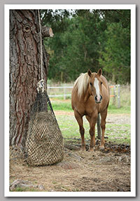 Horses who are out at pasture 24/7 or otherwise housed with ad lib access to hay, are very unlikely to develop stomach ulcers. In fact the ‘cure’ for horses who have developed ulcers apart from a course of medication is 24/7 pasture turn-out or ad lib access to hay.