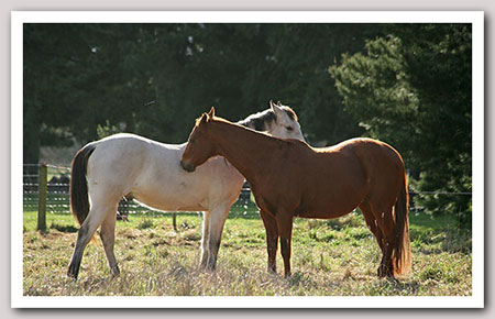 Their expressions are priceless. It's great for Persil who is in his late twenties and retired due to arthritis and it's terrific for Zephyr as he is an only foal. They adore each other. Merlot seems to welcome the respite.