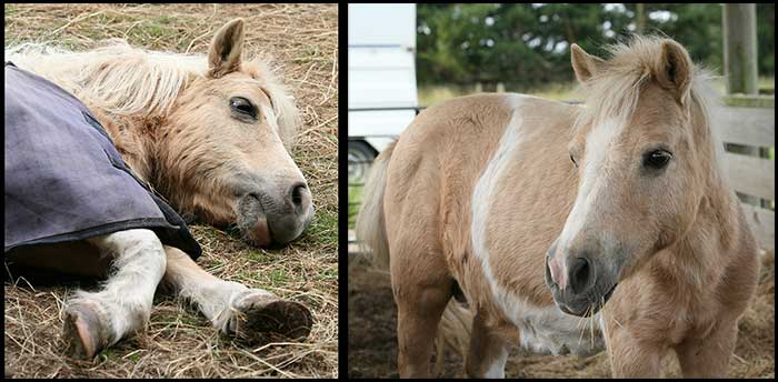 Our very own Dimples, who came to us many years ago after suffering multiple bouts of laminitis, and whom, under our strict control of diet led a very happy few years, trotting around on our track, playing with the other horses and generally trying to be the ‘boss’ pony, has been staying with some great people.