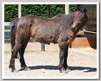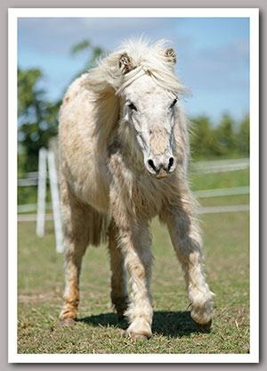 Due to his chronic laminitis, he had slipper and twisted feet but is now well on the road to recovery who loves to be 'caught' just like any other happy mini !!!!!