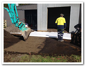 - First they scraped off the top soil and laid geotextile fabric. This can be obtained from most Earthworks companies.