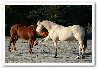 January 15th was Zephyr's first day of real rain. He was not impressed however the cool made him frisky and he and his Mother spronked around the paddock together. his movement is so light and balanced it is a real joy to watch.