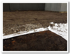 - First they scraped off the top soil and laid geotextile fabric. This can be obtained from most Earthworks companies.